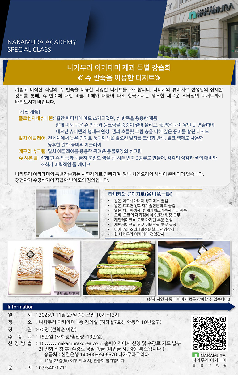 ※본 강습회는 실습이 없는 시연과 시식으로 구성된 강의입니다.