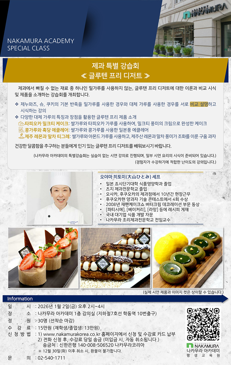 ※본 강습회는 실습이 없는 시연과 시식으로 구성된 강의입니다.