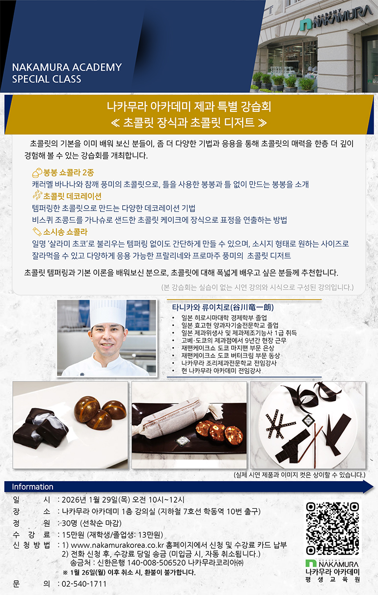 좀 더 폭넓게 초콜릿에 대해 배워보시고 싶은 분께 추천드리는 강습회입니다.