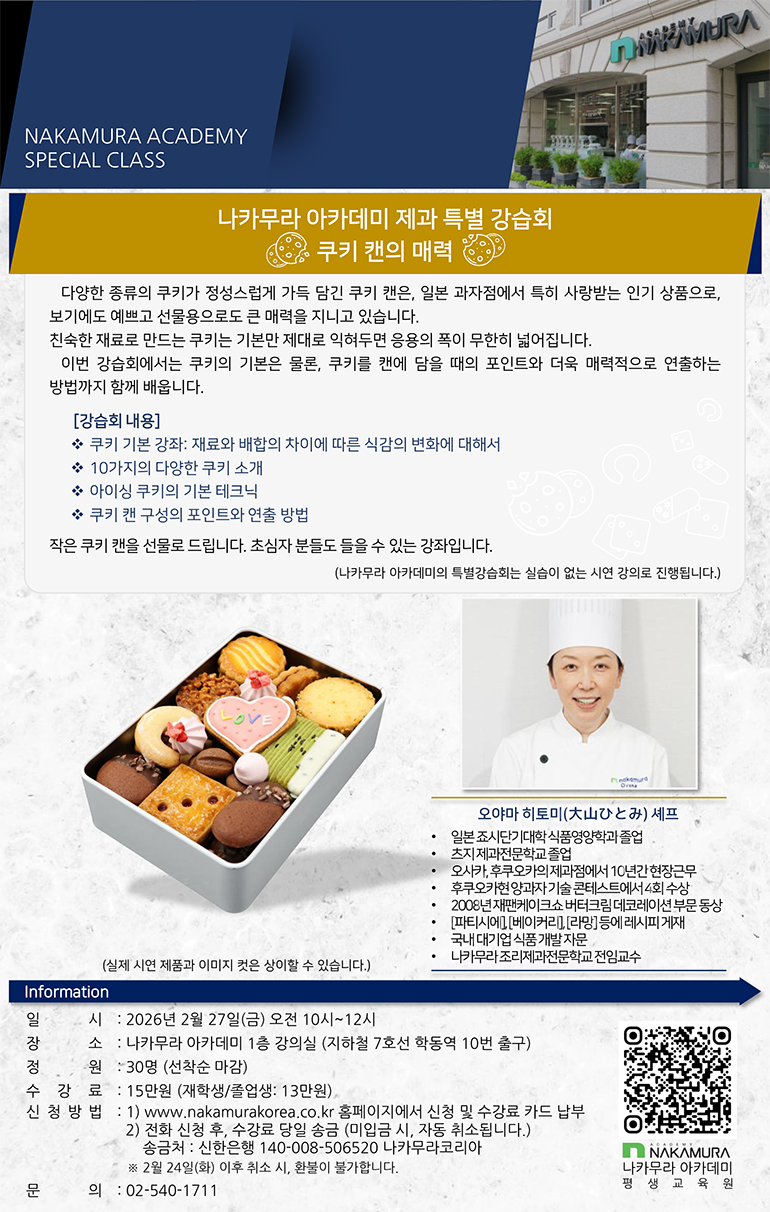 ※본 강습회는 실습이 없는 시연과 시식으로 구성된 강의입니다.