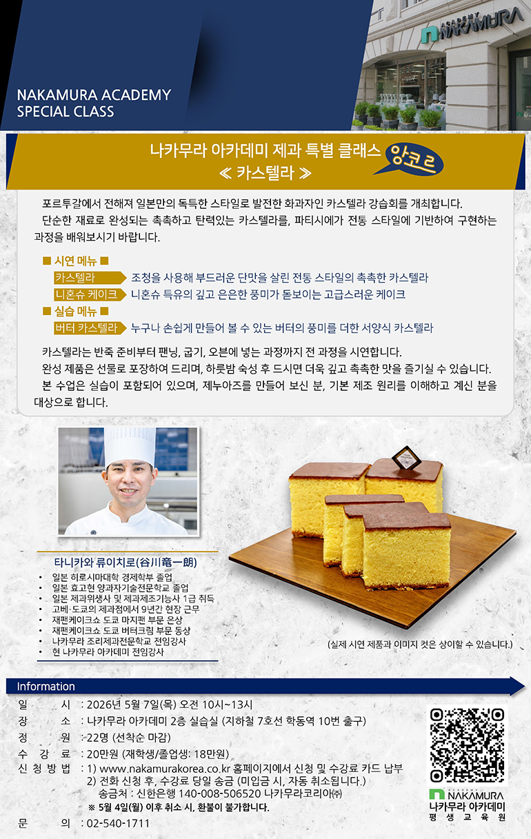 누구나 손쉽게 만들 수 있도록 변형한 ‘버터 카스텔라’를 만들어 보는 강습회입니다.