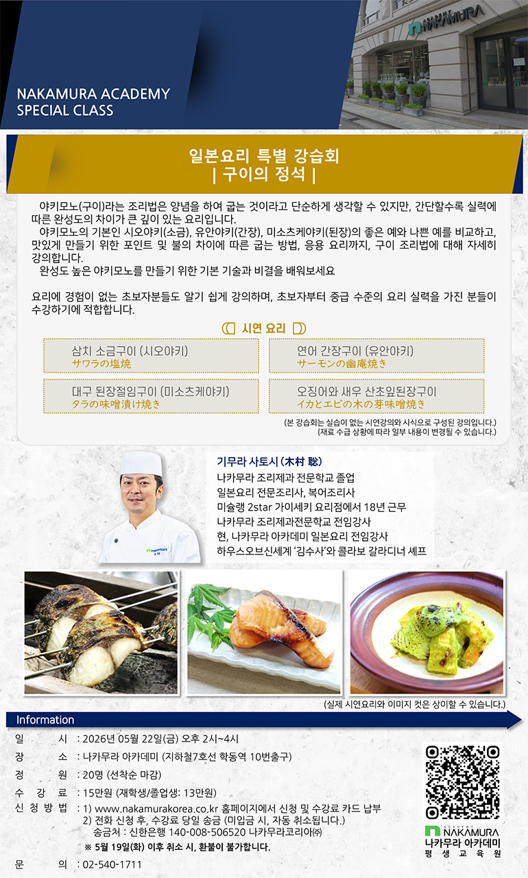 ※본 강습회는 실습이 없는 시연과 시식으로 구성된 강의입니다.